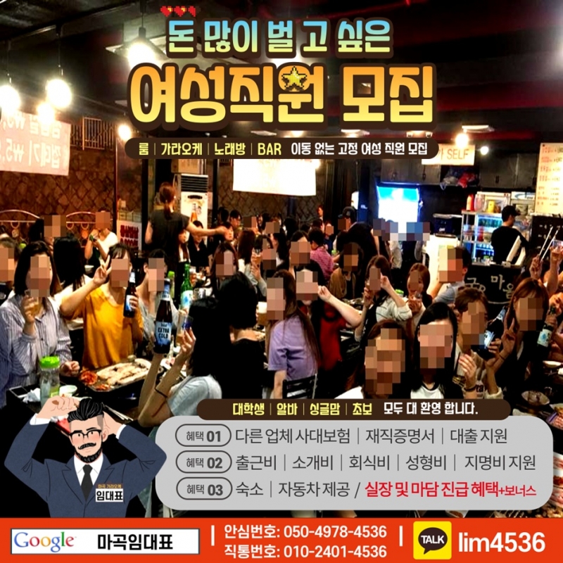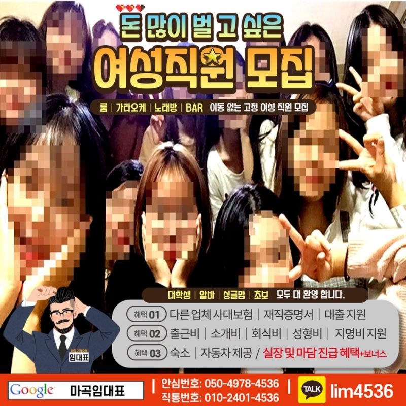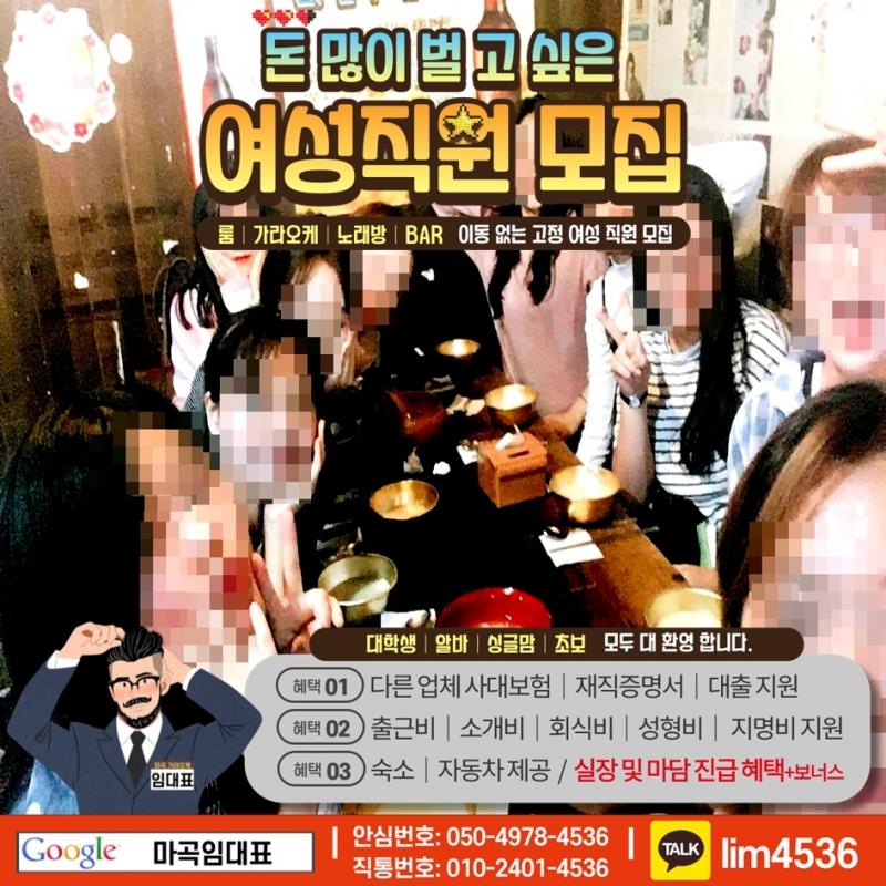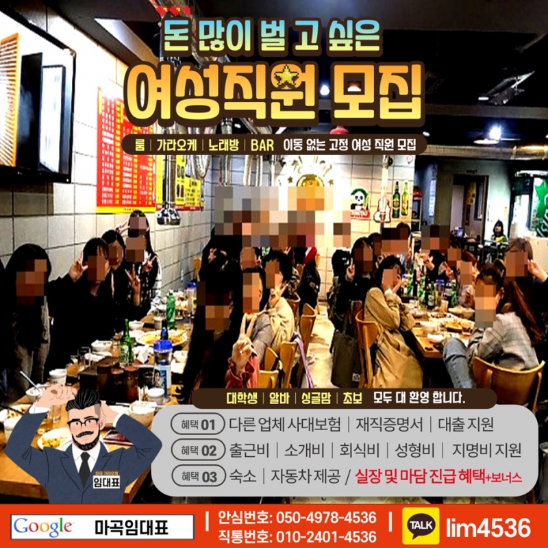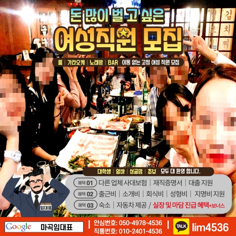 의리 있고 가족같고 서로 돈을 많이 벌수 있겠다하는 여성직원을 찾습니다!