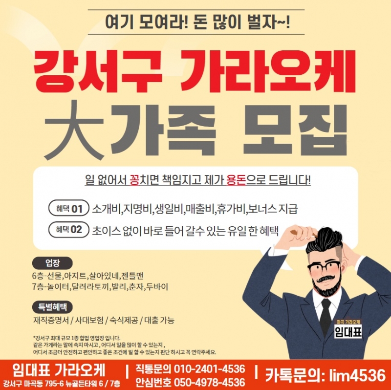 강서구 일반노래방 5개 업장 및 일반BAR 업장 또 협력 업체 가 준비 되어 있습니다.