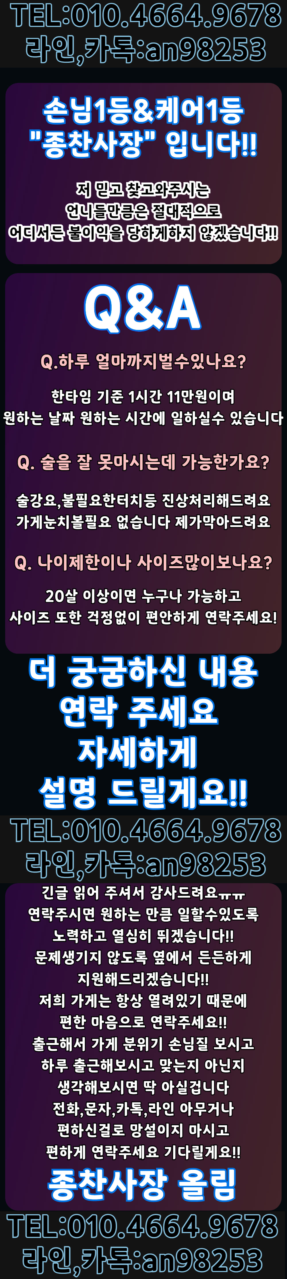 "엄지알바 보고 연락드렸습니다" 라고 말씀하시면 보다 편한 상담이 이루어 집니다.