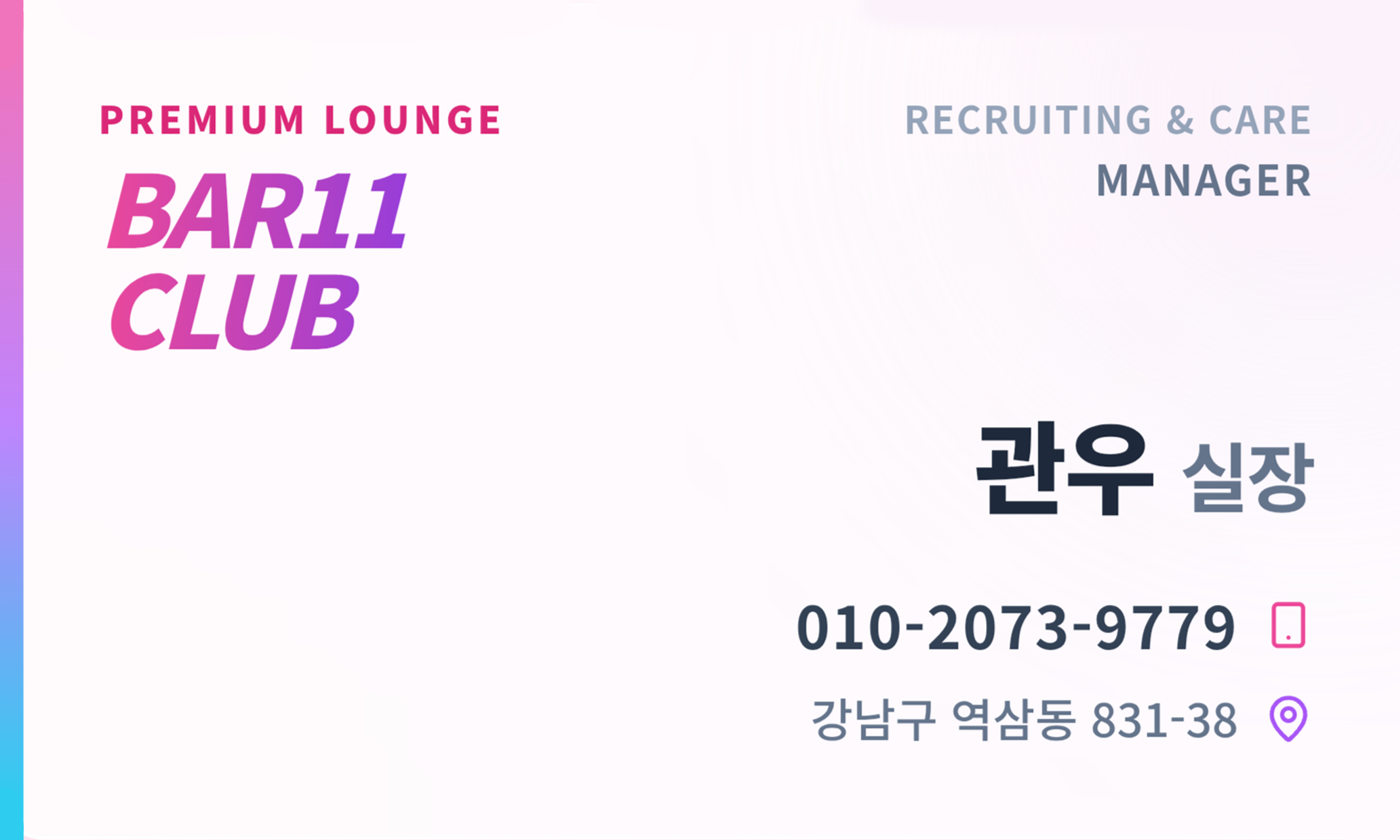 안녕하세요 ~ 강남 BAR11 관우 실장입니다.
